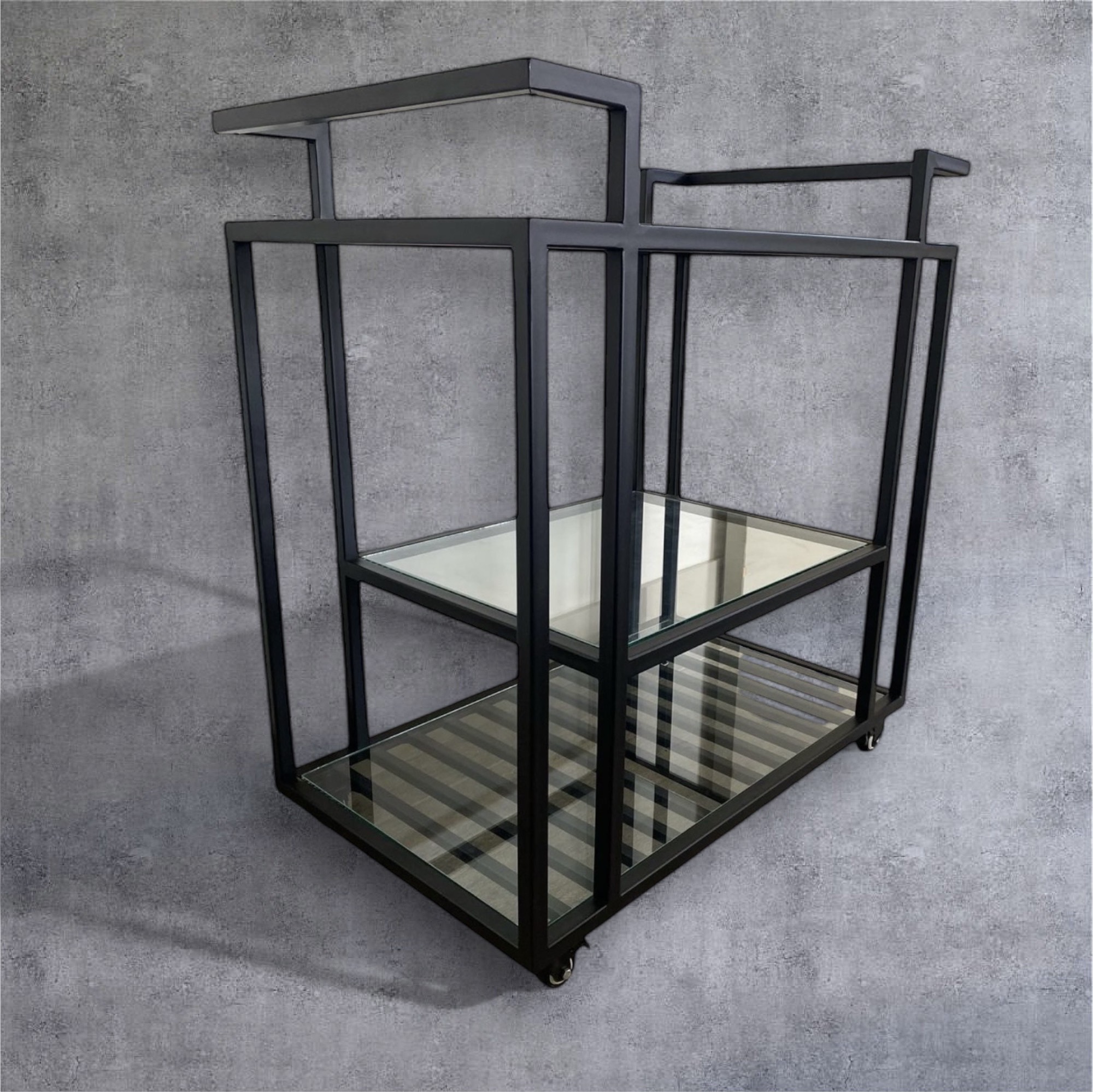 Este elegante carro combina estilo y practicidad, tres cubiertas en vidrio, equipado con ruedas suaves y bloqueables que permiten un movimiento fluido, facilitando el transporte del carro de un lugar a otro.
