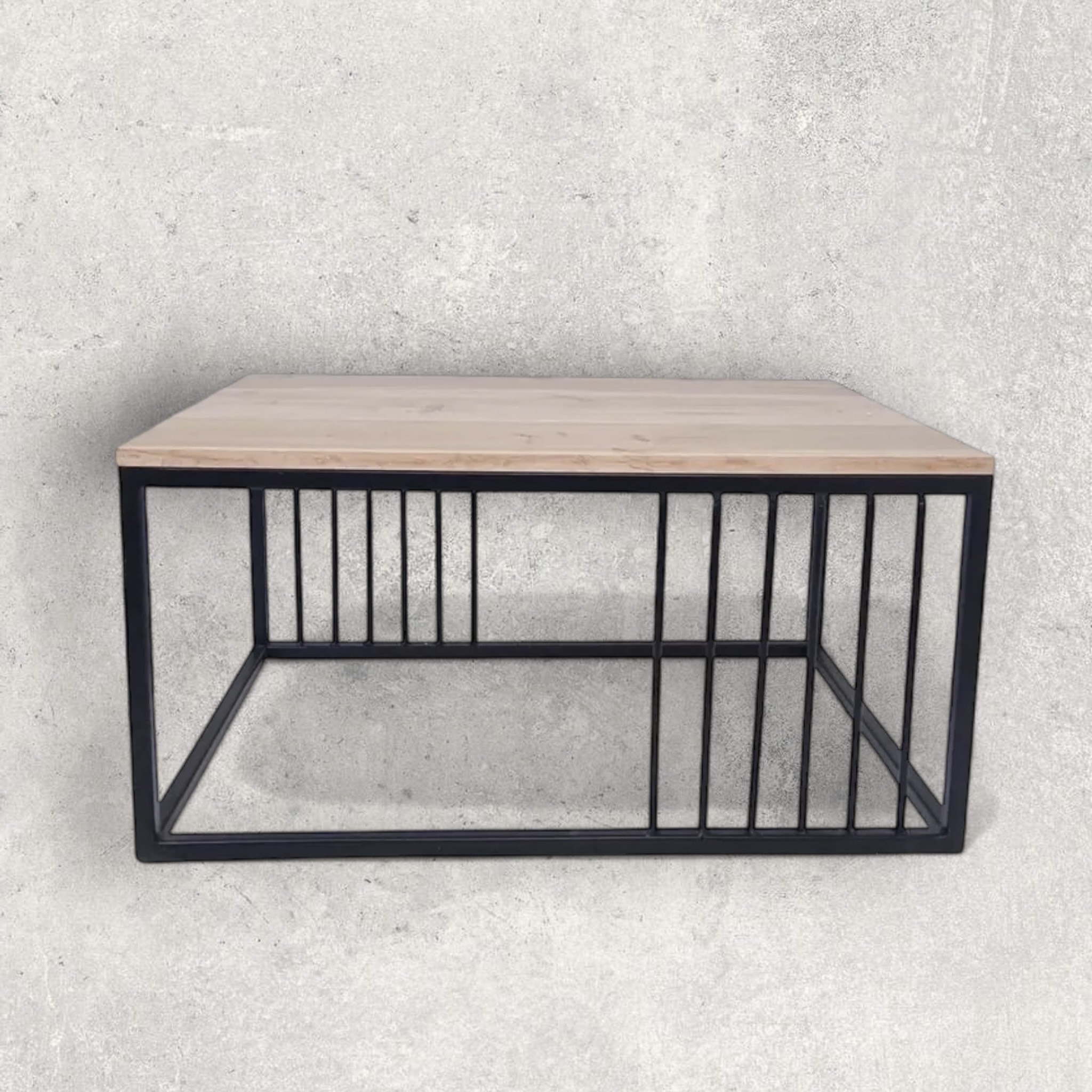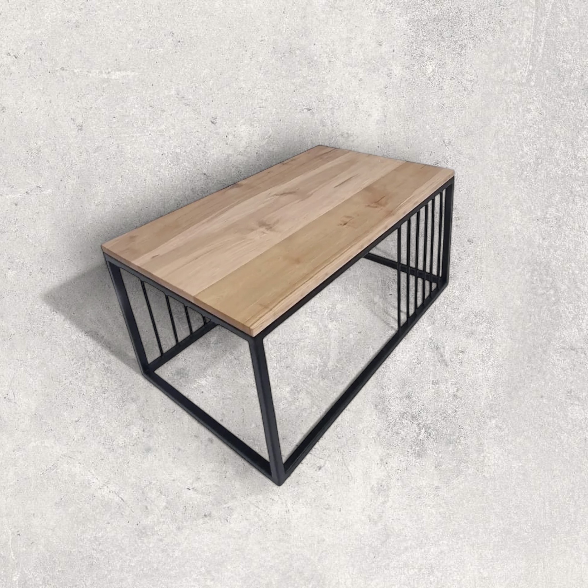 Este modelo de mesa de centro esta Fabricada con estructura de metal Electropintado, Con Cubierta de madera nativa Lenga, su acabado es natural.